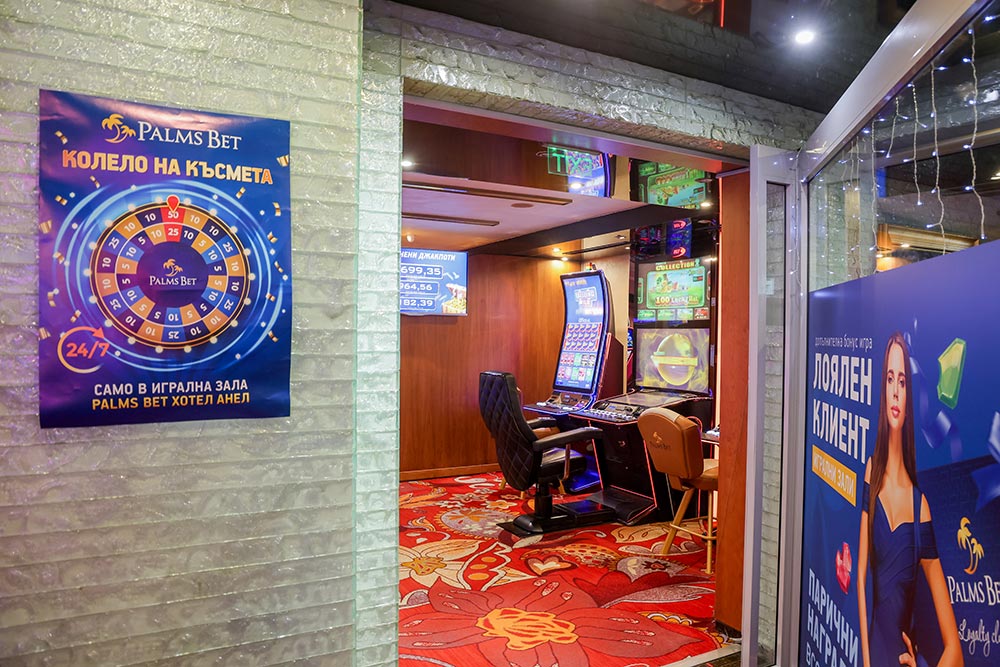 Разположена в хотел Анел на бул. Тодор Александров №14, игрална зала Палмс Бет предлага изискана среда, в която комфортът и стилът вървят ръка за ръка. Пространството е проектирано така, че да създава спокойна и приятна обстановка, подходяща за развлечение и забавление. Гостите имат възможност да избират сред селекция от модерни игрални автомати от доказани международни производители, както и да се потопят в разнообразно и увлекателно игрово съдържание, което допринася за едно качествено и приятно изкарване.